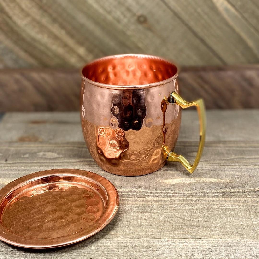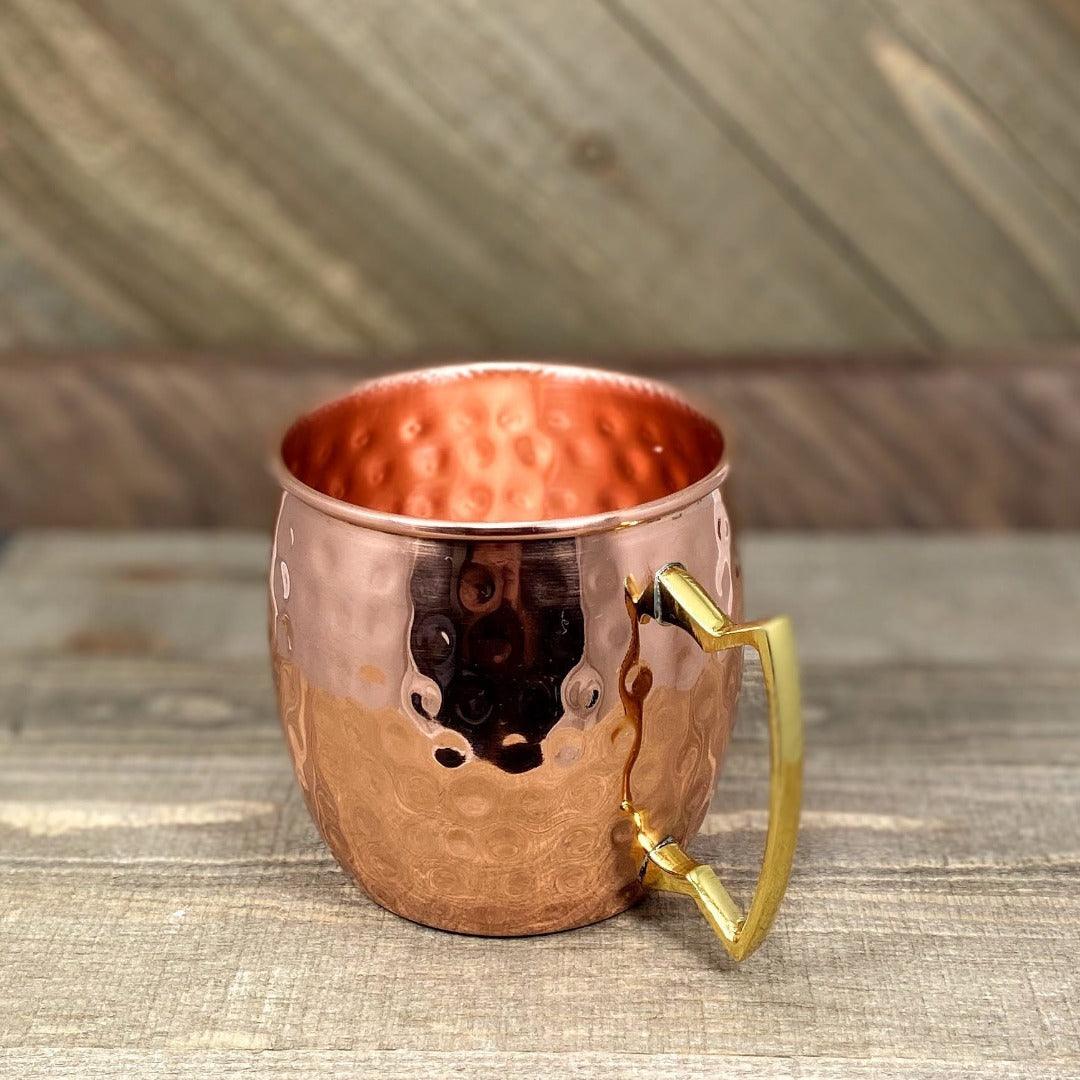 This classic mug features a sleek, hammered by hand finish and an elegant, shaped brass handle. Rustic. Gorgeous. 100% Pure Copper.