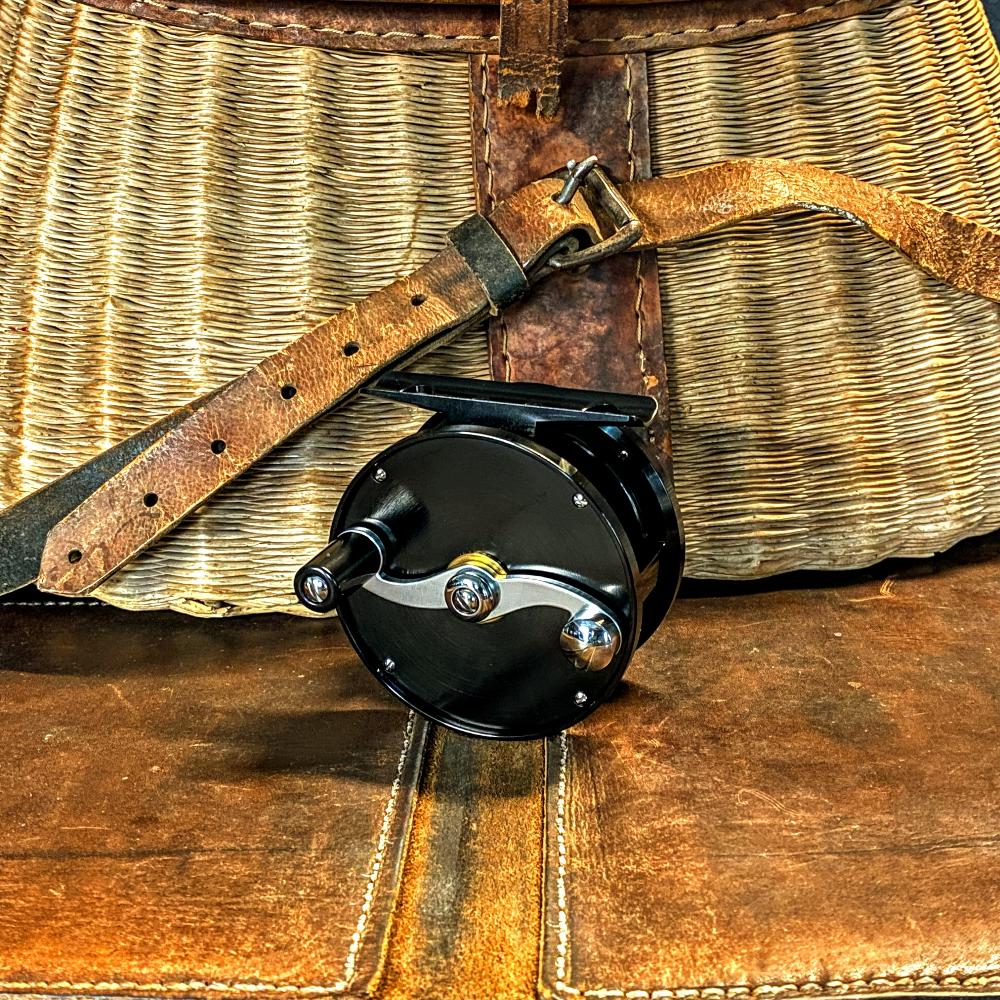 Handmade with high grade stainless steel, the Nikko Classic All-Black Small Trout boasts a classic black backing plate, frame, and spool. Its S-handle and black ebonite knob provide both style and durability, while the classic click & pawl drag offers a delicate and elegant sound.
