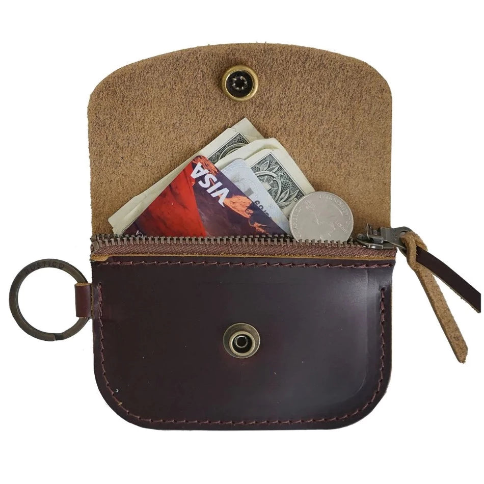 Regular price $35.00 USDThe Anchor wallet is crafted with top-grain leather and antique brass hardware, along with precise machine stitching. It includes a pocket that fits 5-7 cards or a few folded bills and a zippered coin pocket with a leather pull.