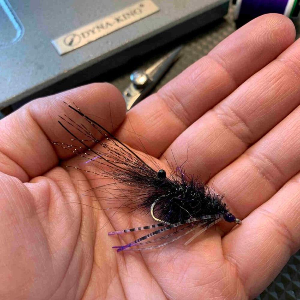 This fly is designed to mimic a shrimp, featuring custom black-pupil mono shrimp eyes, long antenna, striped segmented legs, and calf tail for a realistic appearance. Its weightless design allows for a slow sink rate, keeping it in the upper part of the water column. Ideal for pursuing large Trout on the flats or targeting Redfish in marshy areas with short, quick strips to simulate a fleeing shrimp.