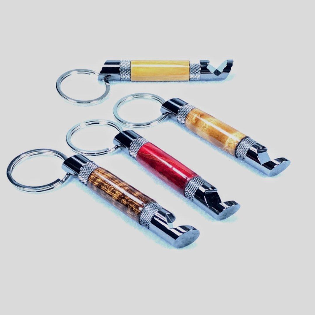 Combined with its already good looks and functionality, Fish On! takes the Bottle Opener Keychain to a higher level with our exotic or native, stabilized wood or custom mixed acrylics. We believe the Bottle Opener Keychain compliments our array of handcrafted libations items.